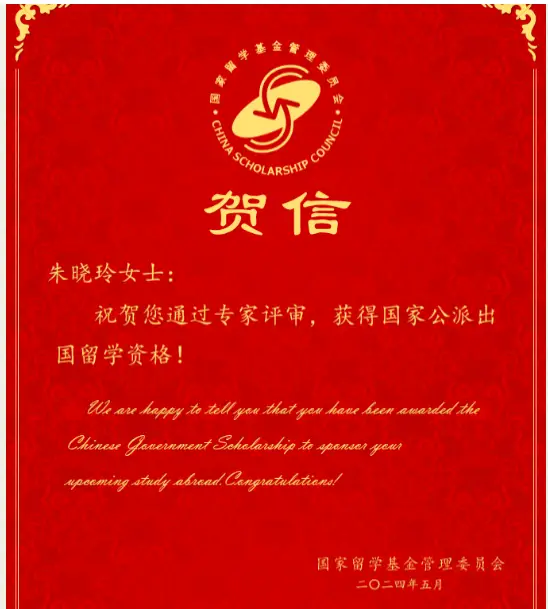 Zuo Xiaoling obtained the national government-sponsored program scholarship